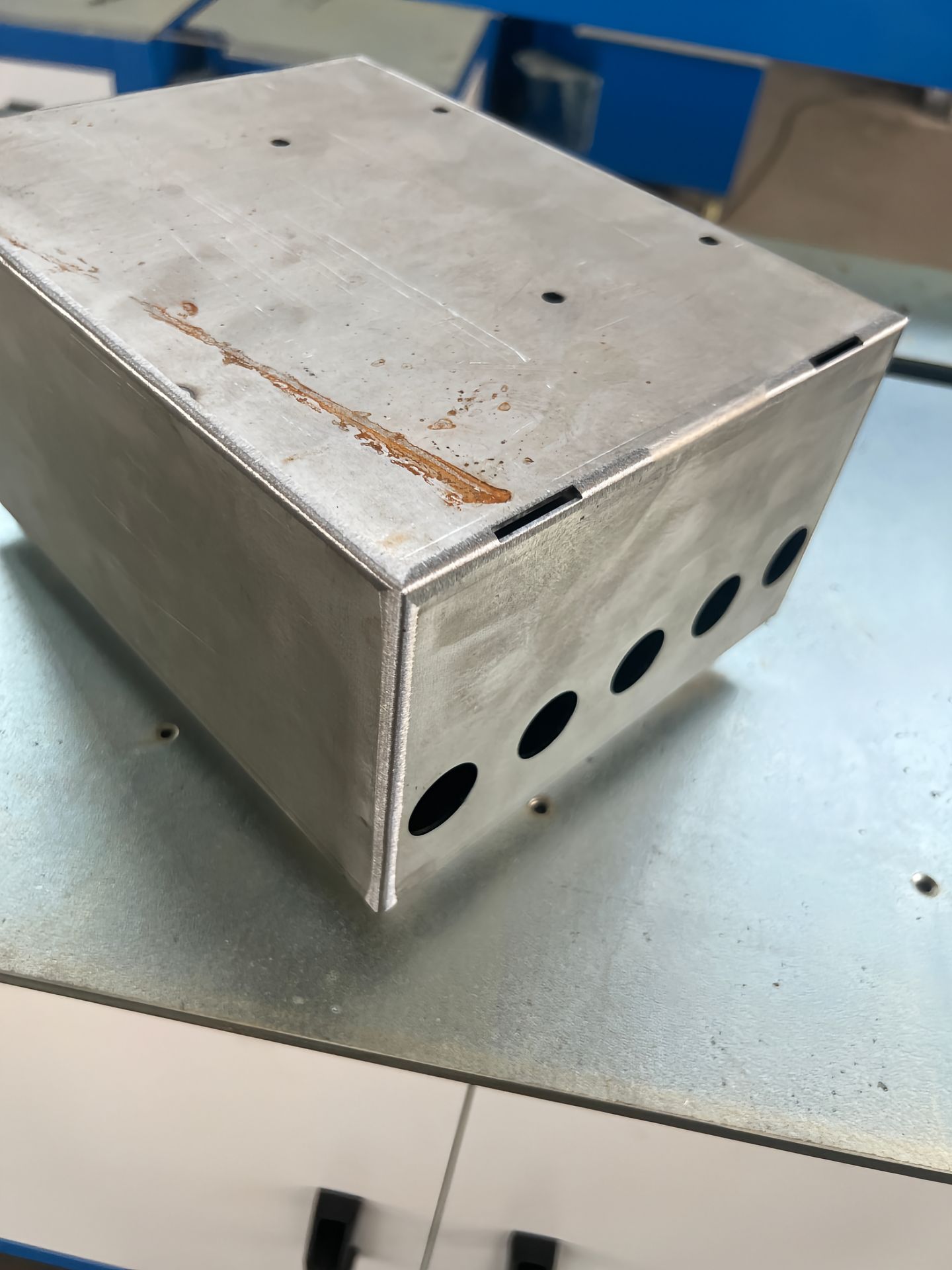 In this case, we used our horizontal grinding machine to process box edge weld seams efficiently and consistently.