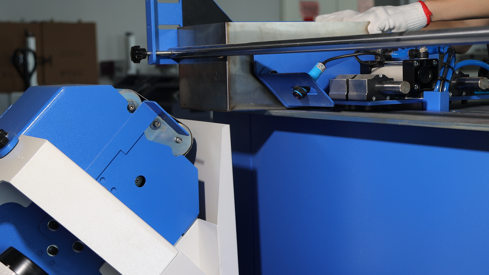 This machine is ideal for handling weld seams along right-angle edges, especially on box-type products. By aligning the box corner with the grinding belt area, the machine automatically processes the desired weld seam length, delivering a smooth and uniform finish.