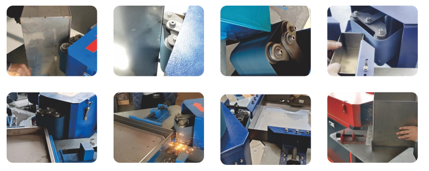 The automatic vertical lifting right-angle grinding machine is designed for grinding welded corners on small sheet-metal box structures.